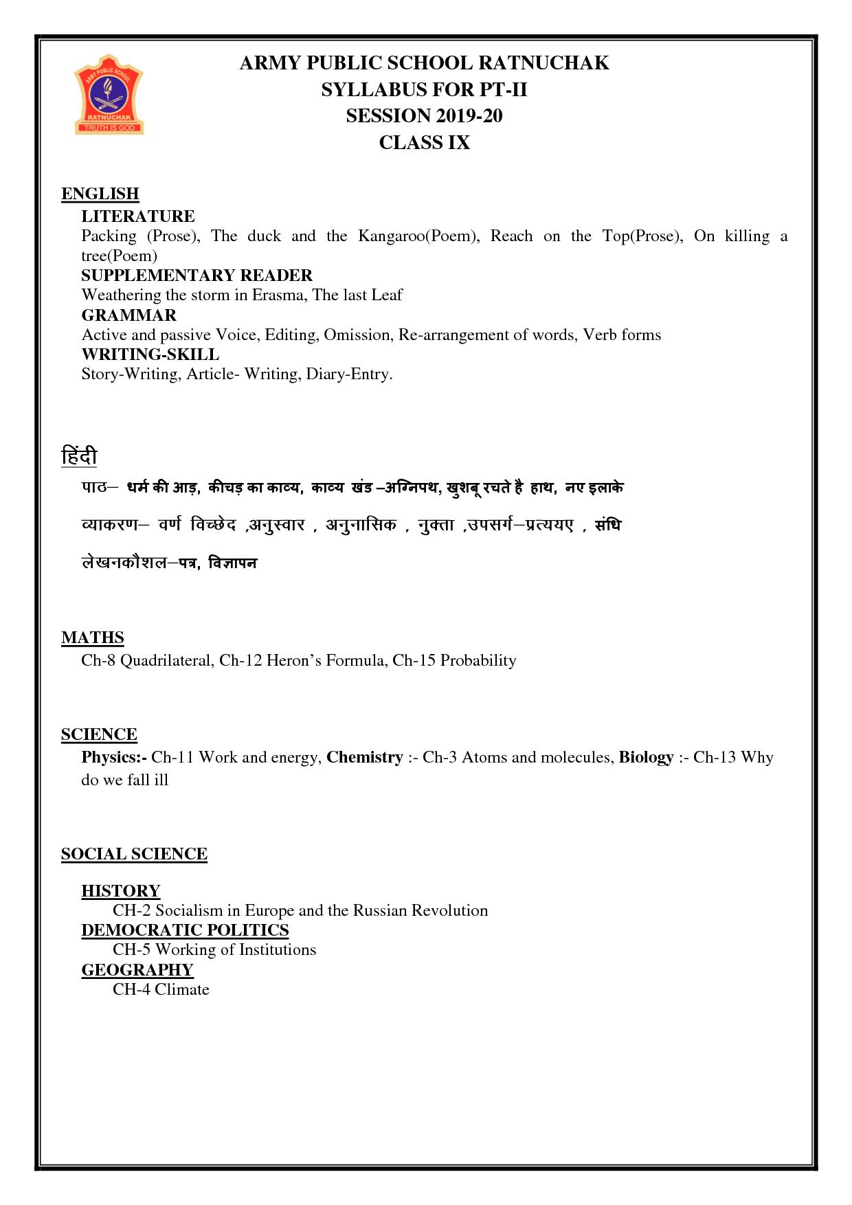 Syllabus of Class IX for Term-II(Session 2021-22)